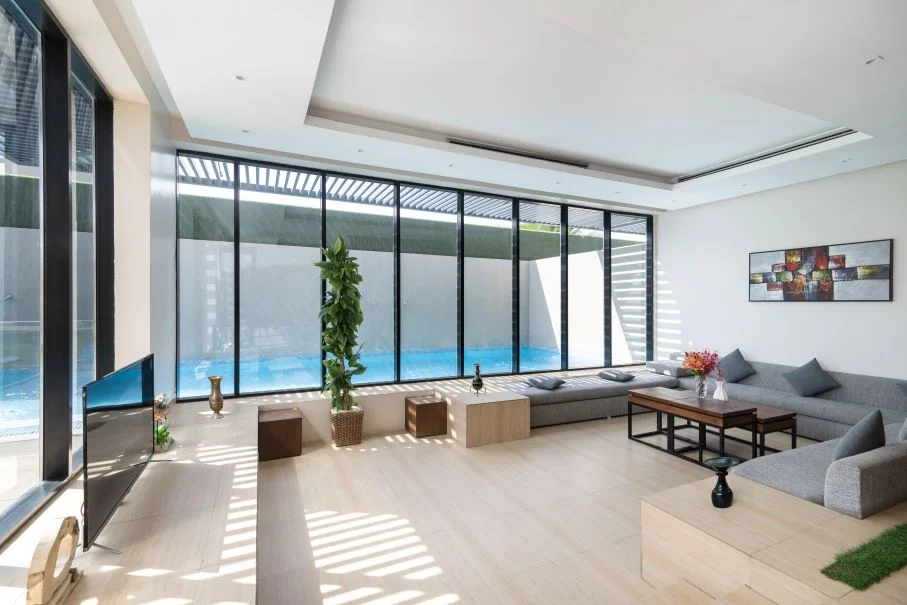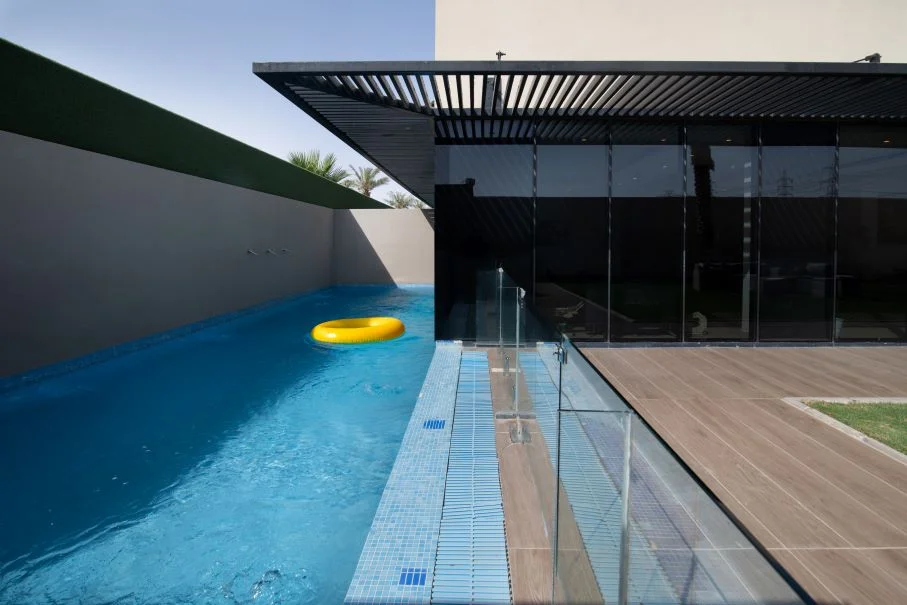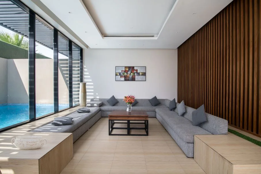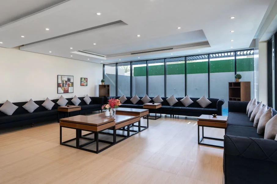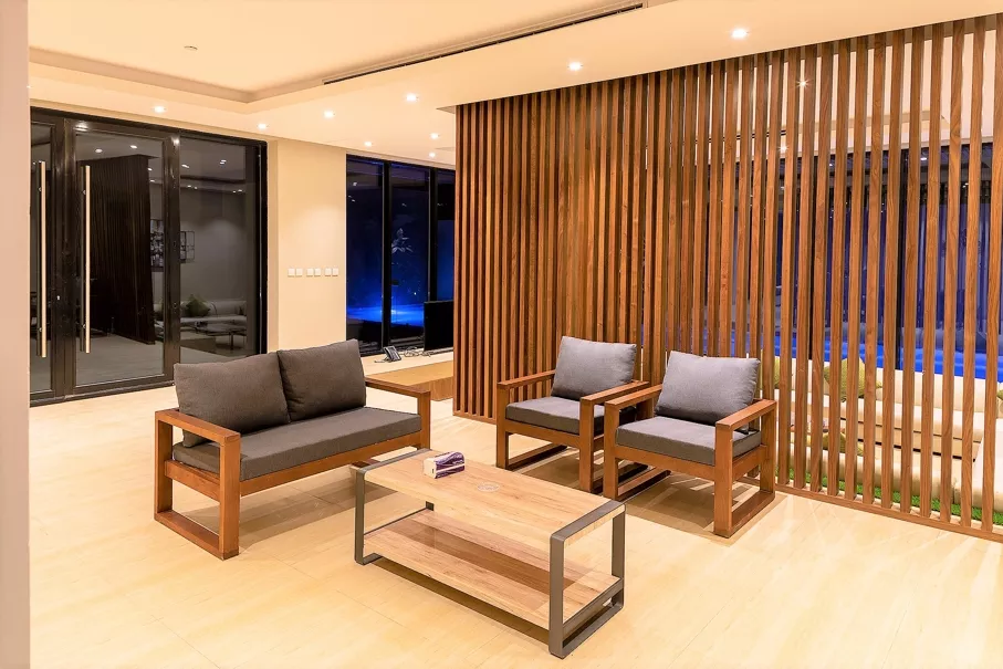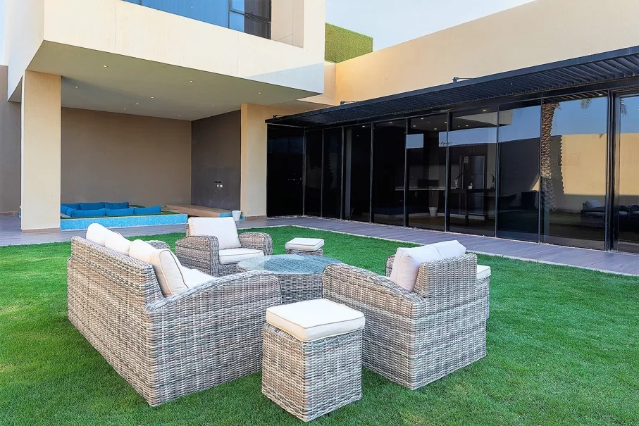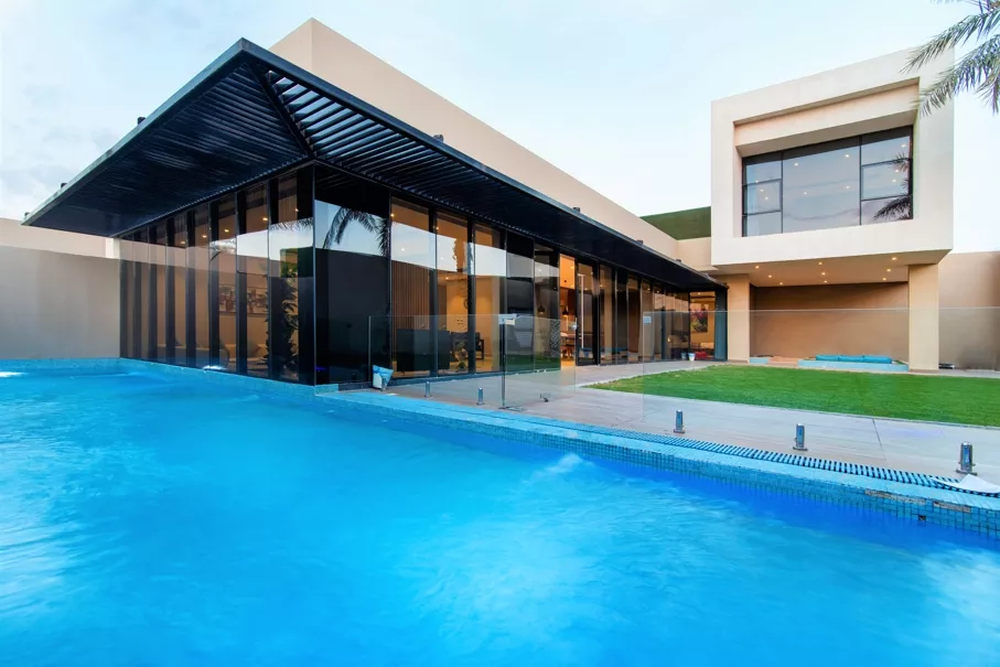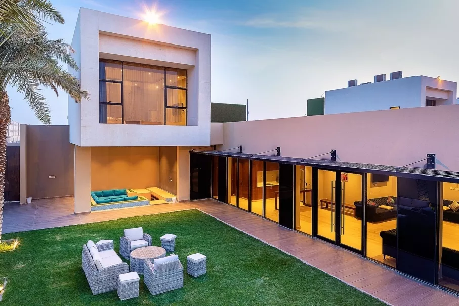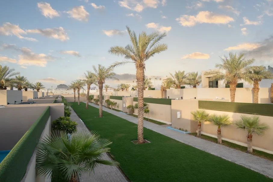 تتكون كل فله بنظام الدوبلكس من دورين بغرفة نوم علوية بحمام خاص ، ومنطقة للجلوس مع شاشة تلفاز مسطحة وصالة طعام ومطبخ مجهز بالكامل وموقف سيارات داخلي كبير ومسبح خاص بالفلة ، تستوعب الفلة عدد من 25 الى 45 شخص.